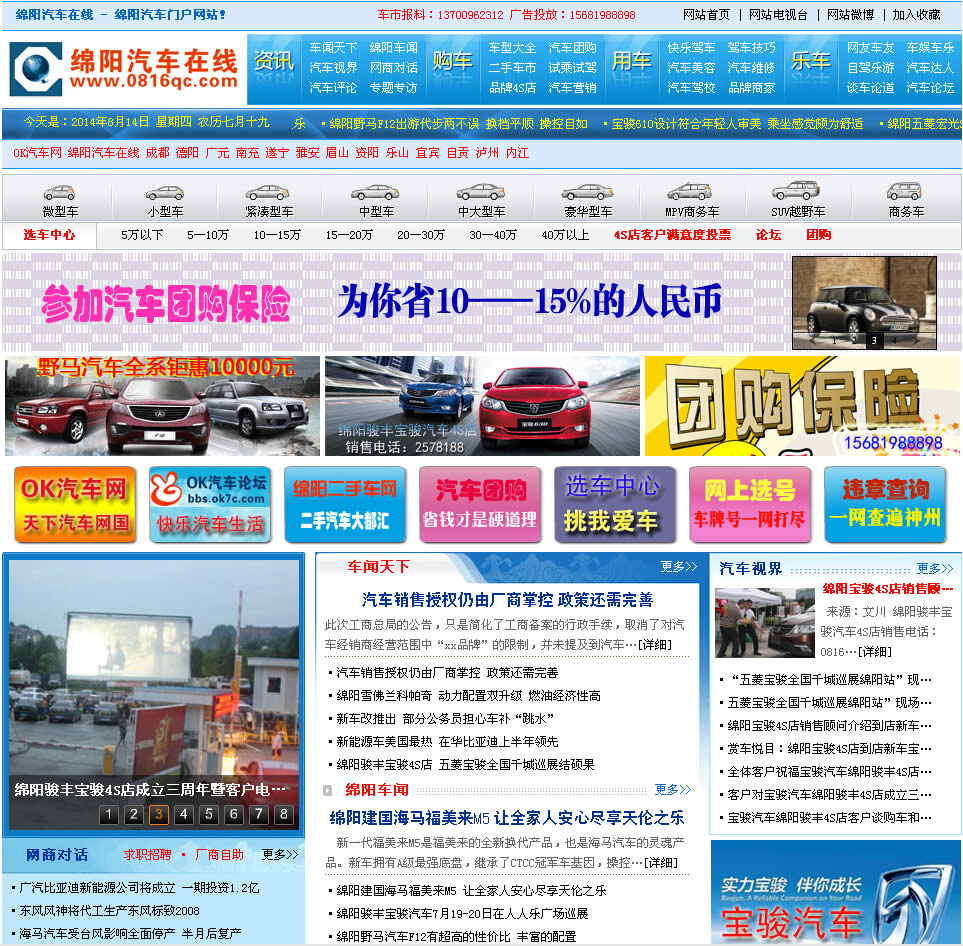 绵阳汽车在线网是绵阳最大在汽车门户网站,拥有绵阳规模最大、更新最及时的品牌4S店信息、车型数据、汽车图片和报价,最精彩的汽车资讯、汽车降价活动和活跃的汽车论坛以及大量汽车周边产品资讯。