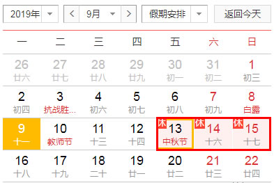 中秋将至,按照国务院办公厅关于2019年部分节假日安排的通知,现将我公司2019年中秋节放假安排通知如下: